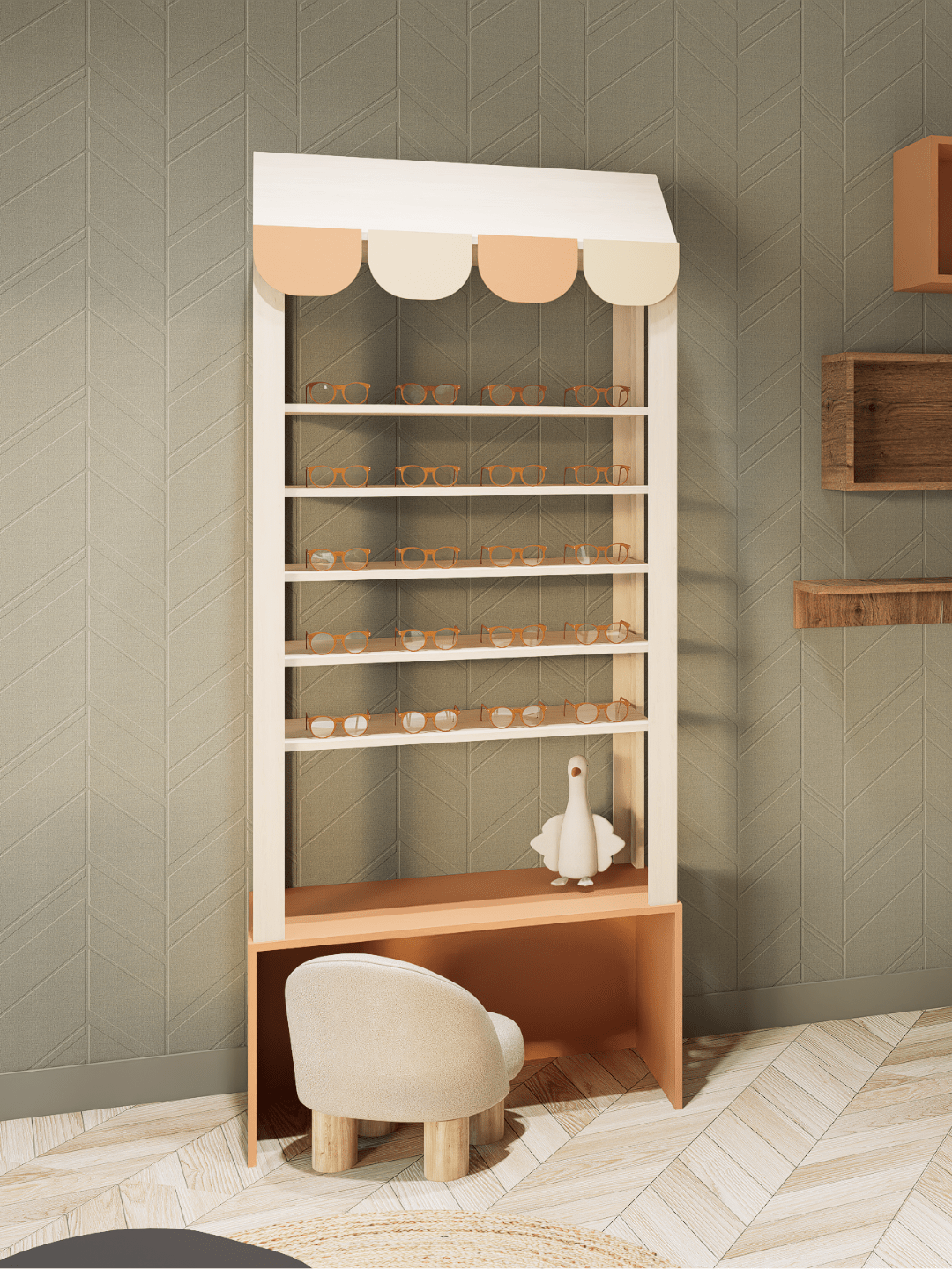 Véritables outils de merchandising, nos présentoirs attirent naturellement le regard et participent à l’identité de votre espace. Qu’il s’agisse d’un univers enfant avec des présentoirs ludiques et esthétiques, ou de la mise en avant de lunettes de soleil et collections saisonnières, ils contribuent à créer une ambiance cohérente tout en facilitant le parcours client.